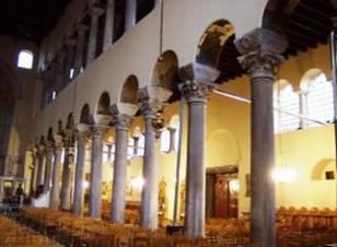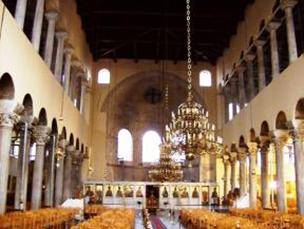 Die Kirche Acheiropoietos liegt im Zentrum der Altstadt von Thessaloniki, parallel neben der Egnatia Straße, zwischen dem Forum/Agora und der Rotonda. Sie ist eine holzgedeckte drei-schiffige Basilika des hellenistischen Typs und zusammen mit der Kirche Agios Dimitrios und Agia Sofia ein typisches Beispiel des frühchristlichen Kirchenbaus. Das äußere des Gebäudes ist schlicht und einfach und das Gewicht symmetrisch auf die Länge der Achse verteilt. Das Mittelschiff ist 37m. lang und 16m. breit. Gegenüber der Seitenschiffe ist es erhöht. So können die drei und vierflügelige Fenster das Kircheninnere ausleuchten. Die gute Innenausleuchtung ist typisch für den Kirchenbau des 4. und 3.Jahrhunderts. (frühchristliche Periode) nachdem das Christentum im Kaisereich offizielle Religion und Ideologie war. Anfangs hatte die Kirche an der Westseite eine Außenvorhalle von der heute noch Spuren erhalten sind. Außerdem nimmt man mit Sicherheit an, dass vor der Außenvorhalle auf dem Gelände des heutigen Parks der Makedonomachen (Freiheitskämpfer) ein viereckiger Hof mit Säulengang war, wie auch an der Kirche Agios Dimitrios. Die Vorhalle, die quer vor den drei Schiffen liegt, ist mit der Hauptkirche durch drei Tore verbunden, von denen das mittlere dreifach ist und früher durch einen Vorhang geschlossen war, wie es auf byzantinischen Bilder oft abgebildet ist. Die beiden Seitenschiffe sind vom Mittelschiff durch zwei Reihen Marmorsäulen mit korinthischen Akanthusblatt-Kapitellen getrennt. Auf den Säulen vom Erdgeschoß steht eine weiter Säulenreihe, was dem ganzen Innenraum etwas leichtes gibt und dazu beiträgt das Licht aus den Seitenfenster eindringen kann. |