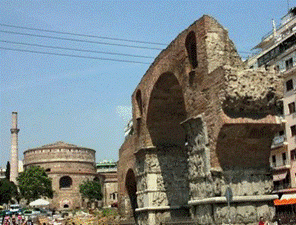 Eins der charakteristischsten Baudenkmäler Thessalonikis ist der Thriumpfbogen des Galerius oder Kamara der nördlich der Egnatia Straße, in der Rotondanähe liegt. Sie bildet den Westlichen Schenkel einer gedeckten Säulenhalle, die aus Triumphbogen und Gewölben bestand. Der Triumphbogen stand auf der Via Egnatia und war Teil des Galerius-Komplexes. Eine römische Palastanlage die sich nach Süden erstreckte auf die heutigen Navarinou und Ippodromiou Plätze.