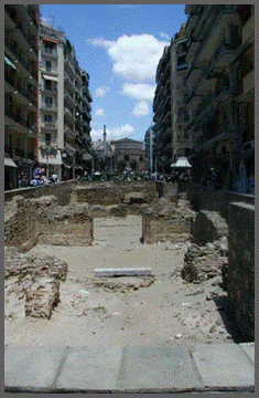 Mit ziemlicher Sicherheit liegen links und rechts von der Bebauung noch archäologische Funde verborgen. Leider sind diese wahrscheinlich für alle Zeit verloren, wie so vieles in Thessaloniki dem modernen Städtebau zum Opfer gefallen ist, aber einiges durch den neuen U-Bahnbau wieder ans Tageslicht kommt.