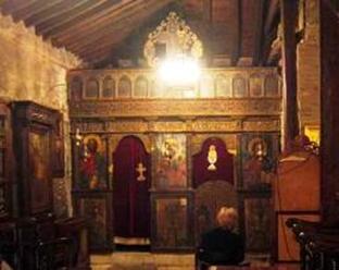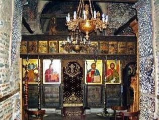 Während der Restauration und Reparatur des Gebäudes im Jahre 1983 entdeckte man in der Klosterkirche Fresken des 11. Jhr., was die Ansicht, das das Gebäude aus dem 14. Jhr. stammt änderte. Der alte Kern der Kirche ist von neueren Anbauten umgeben, die ihre ursprüngliche Form verfälscht und verändert haben. Nur der Altarraum, die Kapelle der Apostel Peter und Paul, die Kuppel mit ihren umgebenden Teilen, sowie die Außenwand im Süden sind vom ursprünglichen Gebäuden. Alles andere stammt aus dem Jahre 1801, als die Kirche vom Thessalonicher Kaufmann Joanis Gouta Kavtantsiolou von Grund auf neu erbaut wurde. Die Südsäulenhalle der Kirche, die kleine Propyläen wurden 1907 angebaut. Architektonisch interessant ist die Stützung der Kuppel an den Wänden des Altarraums und den westlichen Pfosten, ohne das es Säulen gibt, ein Verfahren, das es bei den griechischen Kirchen des 9. Jhr. bis 12. Jhr., vorherrscht. Der Kern der Kirche ist vom kreuzförmigen Typ, so wie bei den Kirchen Agia Ekaterini und Agii Apostoli. Interessant sind auch die Fresken der Kirche die sicher aus der Zeit vor dem türkischen Einfall stammen, sowie die vielen marmornen Wappen, tragbaren Ikonen und andere einzigartige Kostbarkeiten des Klosters. |