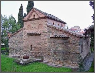 Für den Verfasser die wohl schönsten Fresken aus dem 13. und 14. Jhr. der byzantinischen Kirchen von Thessaloniki, bietet die kleine Kirche am Ende der Apostolou Pavlou Straße in der östlichen Arno Poli. Die Wände und Decken im zentralen Kern (schwarzer Abschnitt), sind komplett ausgemalt. In kraftvollen Kompositionen mit herrlichen Farben stellen sie thematisch Heiligengestalten und Portraits dar. Die Kirche unterstand dem Kloster Vlatadon und war ein Klostergut. Angeschlossen war ein Waisenhaus. wonach die Kirche ihren Namen bekam. Agiou Nikolaos Orfanos (der Waisen). |