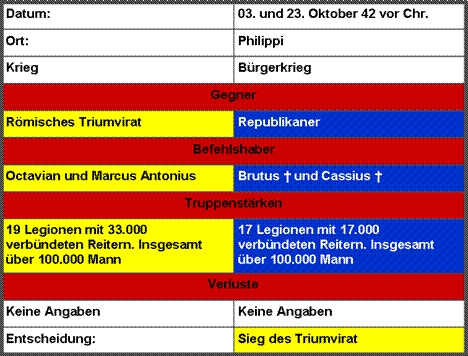Die Schlacht von Philippi am 03. und 23. Oktober 42 vor Chr. |