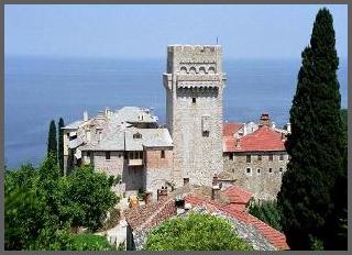 Das Kloster Karakallu wurde erstmals in einem Dokument aus dem Jahre 1018 erwähnt. Im 13. Jahrhundert wurde es völlig zerstört und von den Kaisern Andronic II. und Ioannis V. Paleologos wieder aufgebaut. Aber die Zerstörungen nahmen bis heute kein Ende. Im 14. Jahrhundert war das Kloster Angriffen von Kreuzrittern und Piraten ausgesetzt. Im 16. Jahrhunder wurde es noch einmal völlig zerstört und mit finanzieller Unterstützung des Herrschers von Moldavien wieder aufgebaut. Schließlich verursachte im Jahre 1988 ein Feuer große Zerstörungen. Heute ist Karakalou aber in alter Form wiederhergestellt. |