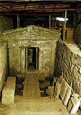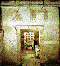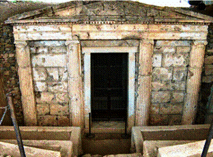 Die makedonischen Gräber im allgemeinen, dienten oft mehreren Generationen als letzte Ruhestätte und wurden als das Haus der Toten betrachtet und waren dementsprechend innen und außenarchitektonisch gestaltet und eingerichtet, dem sozialen Rang und der Bedeutung des bestattenden angepasst. Wände waren zum Teil verputzt und mit Stuckarbeiten und Wandmalerei mit den unterschiedlichsten Motiven verziert. Oft waren Kultstatuen aufgestellt. Eingerichtet mit Mobiliar wie Klinen (Ruheliege), angefertigt aus Holz oder Stein, einen Thron und andere Sitzmöbel. Die Art der Bestattung konnte verschieden sein, entweder wurde der Leichnam in Sarkophagen oder auf der Kline zur letzten Ruhe gebettet. Bei kremierten Toten wurden die Überreste in Urnen, unterschiedlich in Form und Material bestattet. Durch Plünderungen, schon in der Antike der überreichlichen Beigaben, wie Haushaltsgeräte, Waffen, Rüstzeug und andere Dinge des täglichen Gebrauchs, meistens aus wertvollen Materialien und kunstvoller Ausführung, sind den Wissenschaftler leider viele Informationen abhanden gekommen, die Auskunft und Datierung von Personen und Grabanlagen erschweren oder gänzlich unmöglich machen. Leider gibt es auch noch heute Grabräuberei, verursacht durch skrupellose Geschäfte im internationalen Kunsthandel oder durch Ankauf unseriöser Museen. |