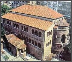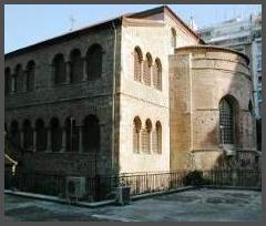 Die Kirche Acheiropoietos, d.h. die nicht von Menschenhand gemachte, befindet sich im Stadtzentrum unterhalb des Forums an der Egnatiastraße, und gegenüber dem Platz der Makedonischen Befreiungskämpfer (Makedonomachon). Sie ist eine Basilika mit drei Klitos hellenistischen Typs, hat ein Holzdach und bildet zusammen mit der Agiou Dimitriou und der Agia Sofia-Kirche ein Musterbeispiel altchristlichen Kirchenbaustils. Den Schätzungen nach, wurde die Kirche nach dem dritten Ökonumenischen Konzil von Ephesus im Jahre 431 errichtet. |
