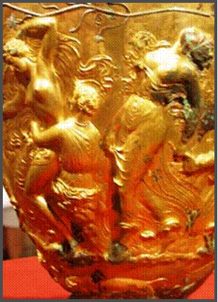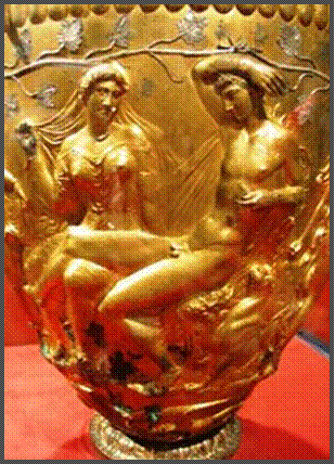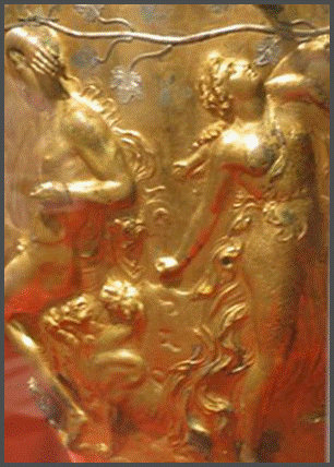 Hauptthema der Dekoration ist die Hochzeit von Dionyssios und Ariadne. Um sie herum drehen sich Satyrn und Mänaden, im wilden ekstatischen Tanz.