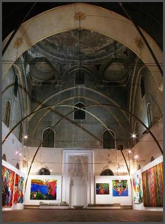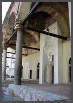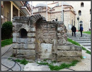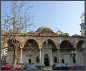 Die Alatza Imaret Moschee befindet sich auf einem kleinen Platz, der von der Odos Kassandrou über einige wenige Stufen zu erreichen ist. Die Moschee ist umringt von Häusern und der Zugang zu dem Platz, ist lediglich auf den zweiten Blick zu erkennen. Eine Inschrift über dem Eingang der Moschee belegt den Bau für Februar 1484 durch Isaak. Der Name der Moschee bedeutet Vielfarbigkeit und geht auf die vielen Kacheln zurück, die in der Moschee verarbeitet worden sind. Auf dem Gelände der Moschee haben sich ein Minarett, zwei kleine Friedhöfe und eine kleine Schule befunden. Besonders interessant wird die Moschee durch die vielen Fresken gemacht, die in Anlehnung an die byzantinische Ikonographie erfolgt ist.Die Moschee musste bereits 1812 restauriert werden. Heute wird sie, nach erneuten Restaurationen, als Veranstaltungsraum genutzt. |